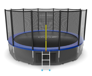 Комплектация: Батут, верхняя защитная сеть, защитный мат, лестница, нижняя защитная сеть